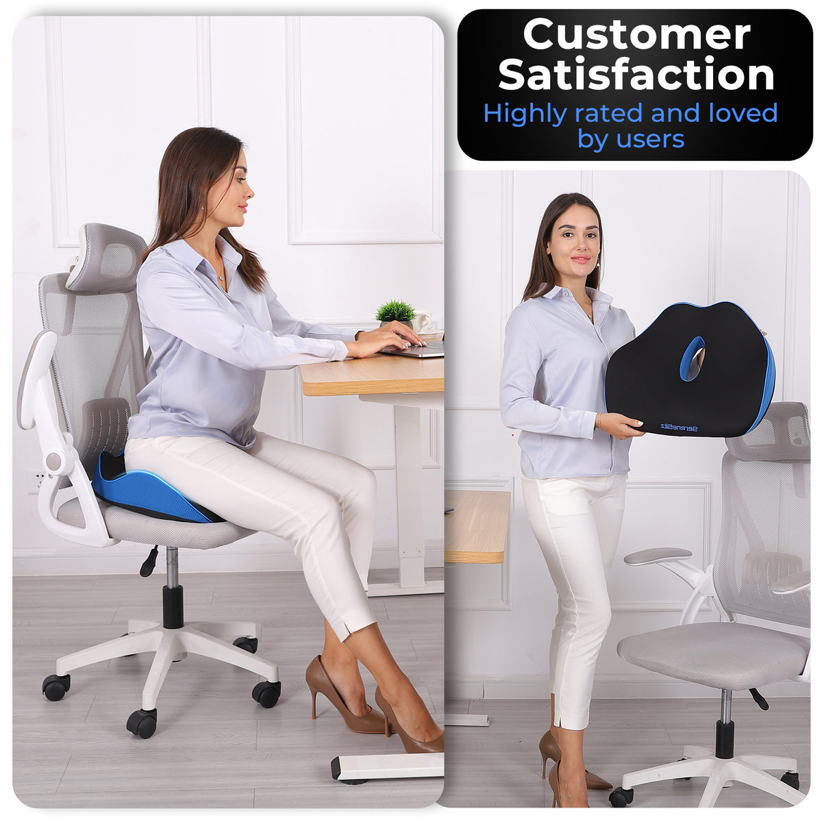 Reduces pressure on sensitive areas, making sitting more comfortable for long periods at work, driving, or at home. -